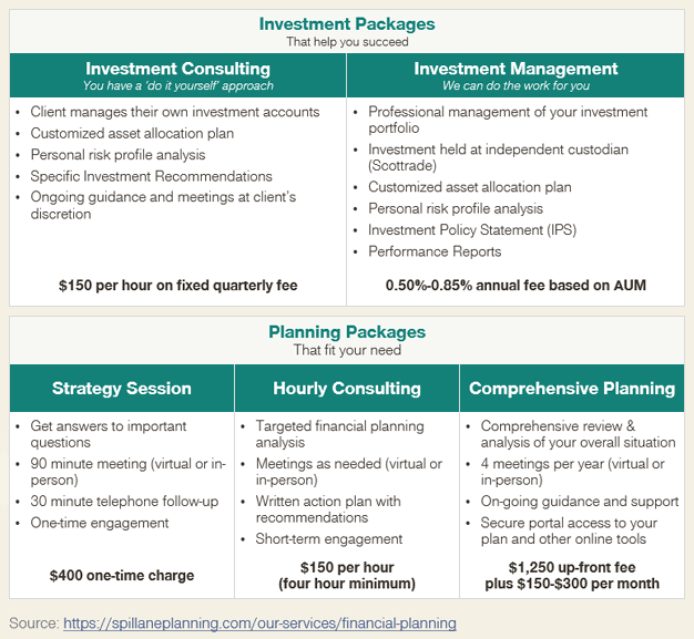 [Following] is an example of a choice-based proposition, from Spillane Financial Planning.
